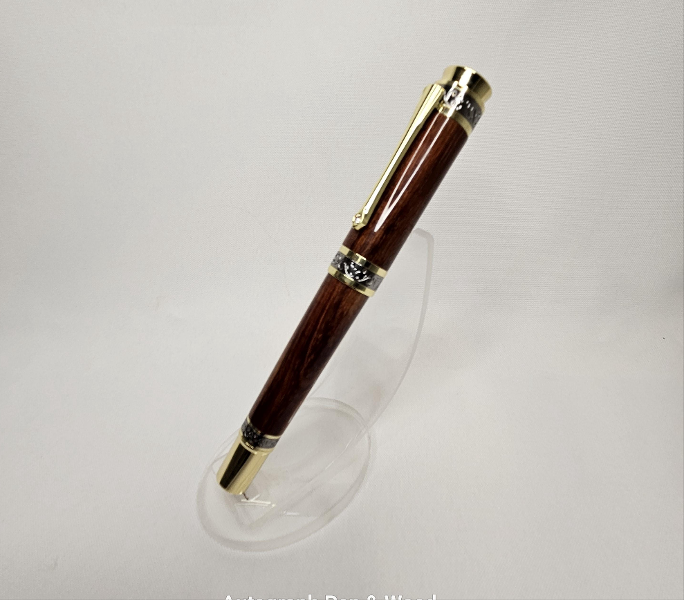 Introducing the Granadillo Handmade Executive Rollerball Pen – a true masterpiece that combines the beauty of rare Granadillo wood with premium gold and black titanium hardware. Known for its deep, rich reddish-brown tones and striking grain patterns, Granadillo is a rare and highly sought-after wood, making each pen one-of-a-kind. Handcrafted with precision and care, this executive rollerball pen offers a luxurious writing experience with its smooth ink flow and perfectly balanced design. The stunning gold and black titanium hardware add a touch of elegance and sophistication, making this pen not only functional but a true statement piece. Whether you're gifting it to a loved one, a colleague, or treating yourself, the Granadillo Handmade Executive Rollerball Pen is the perfect blend of style and performance. Features: Material: Handcrafted Granadillo Hardwood Ink Type: Rollerball – Smooth, consistent ink flow for effortless writing Length: Approx. 5.5 inches Hardware: Polished Gold and Black Titanium accents for a refined look Unique Grain: Each pen is unique with beautiful, natural grain patterns Refillable: Easy-to-replace rollerball ink refills for long-lasting use Packaging: Luxurious packaging, perfect for gift-giving Why You’ll Love It: Rare and Beautiful Wood: Granadillo is a stunning exotic wood known for its unique appearance and durability. Premium Hardware: Gold and black titanium accents provide a sophisticated contrast to the rich wood, creating a timeless design. Smooth Writing Experience: Rollerball ink ensures a fluid, uninterrupted writing experience. Perfect Gift: Ideal for executives, professionals, writers, or anyone who appreciates luxury stationery. Perfect For: Executive gifts or corporate giveaways Special occasions such as birthdays, anniversaries, or graduations Writers, journalers, or anyone who enjoys fine writing instruments Collectors of handcrafted, luxury pens Elevate your writing experience with the Exotic Hardwood Granadillo Handmade Executive Rollerball Pen. This pen isn’t just a tool; it's an investment in elegance and craftsmanship. Order yours today and experience the luxury of writing with an exquisite, handcrafted pen.