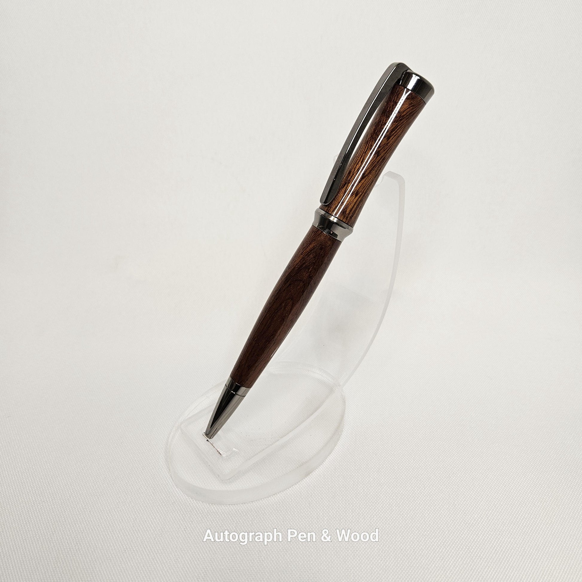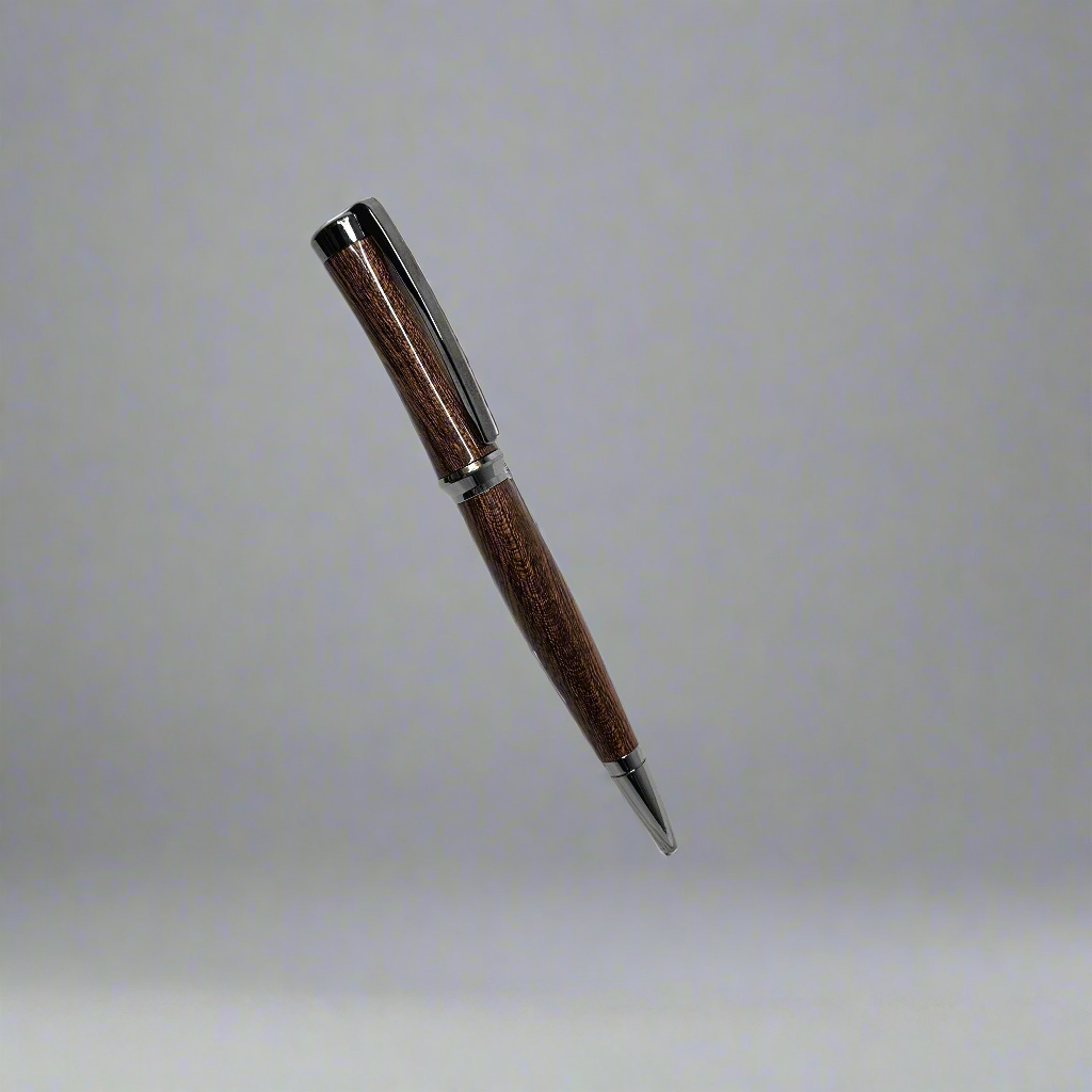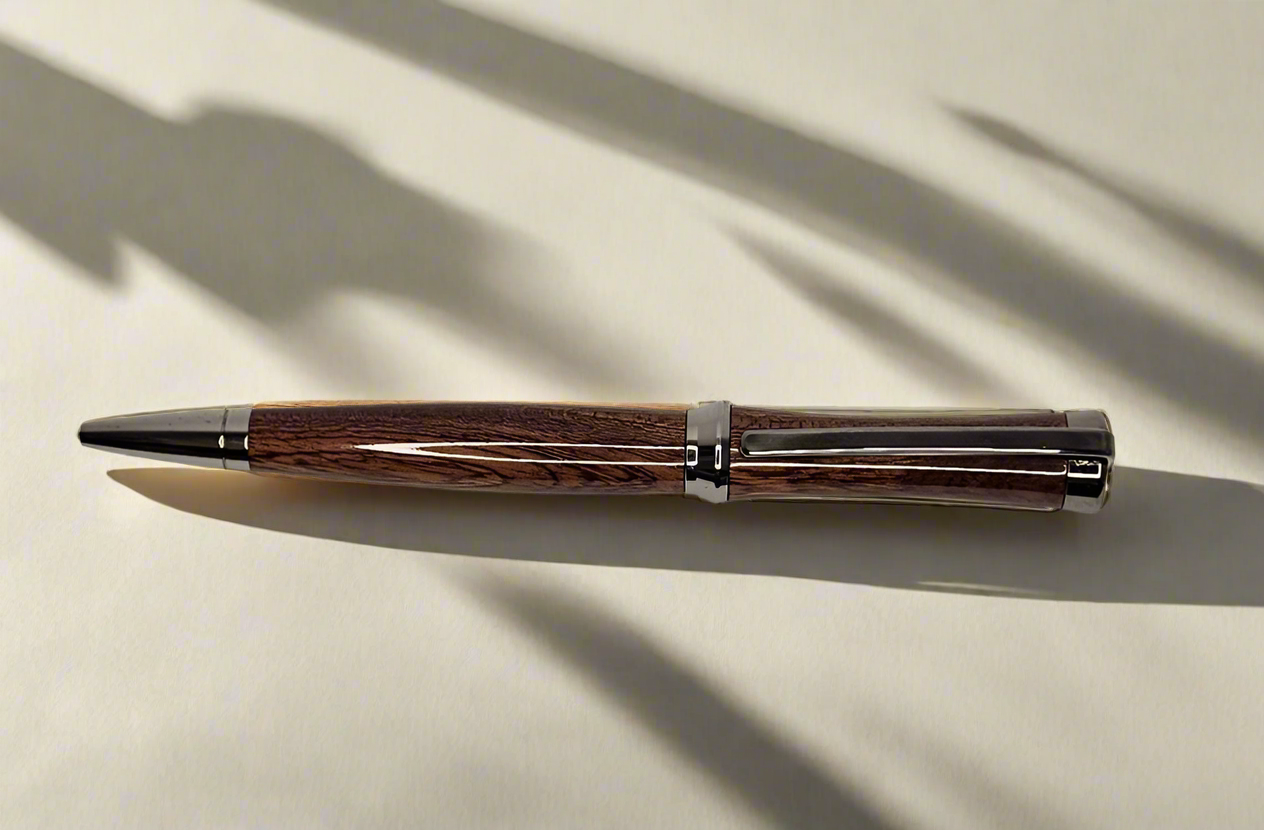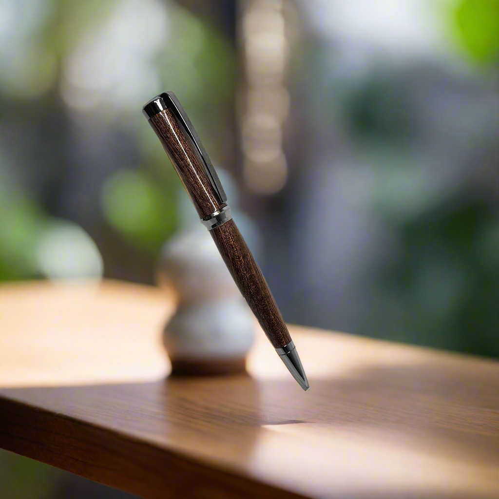 Discover the perfect blend of elegance and functionality with our handcrafted Sapele wood pen, accented by sleek gunmetal hardware. This pen is not just a writing instrument, but a statement of style.